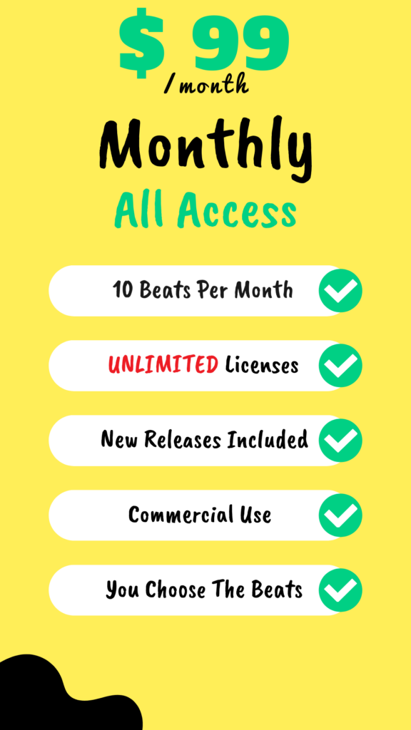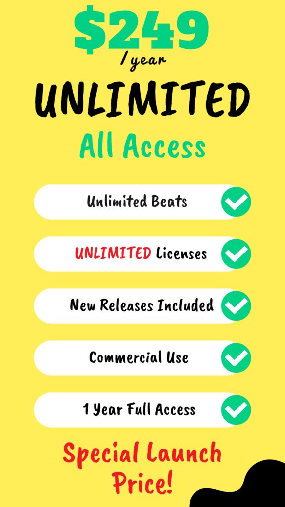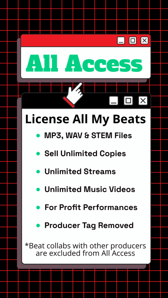 All beats made exclusively by SoundGrips are included in the All Access pass. The only beats on this site that aren’t included in the pass are beats produced by SoundGrips and other collaborators. (Prod by SoundGrips x “Other Producer”)